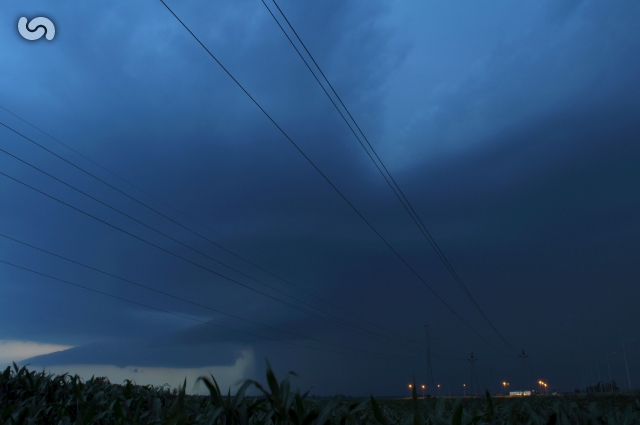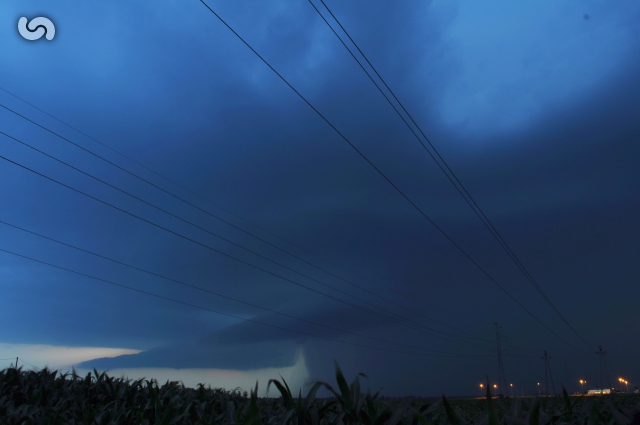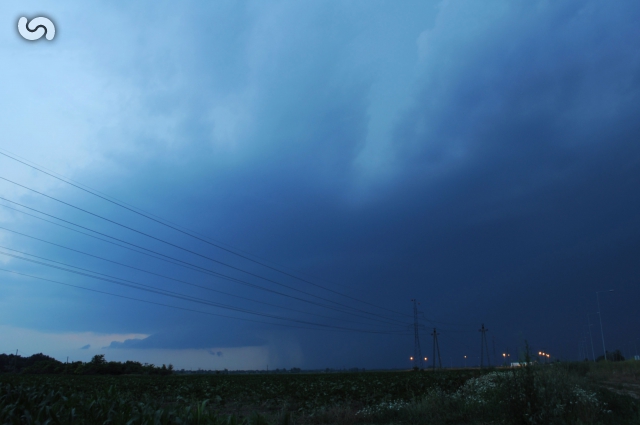 Fenti képen sokat lehet merengeni, hogy vajon egy beágyazott szupercella falfelhőjét látjuk-e, de mivel elvileg ekkor még nem volt jelentős szélnyírás, ezért nem merjük ráfogni, hogy ez biztosan az volt. Mindenesetre hasonló szögből, Devilstorm már fotózott szupercellát, mely fotó kísértetiesen hasonlít ehhez…