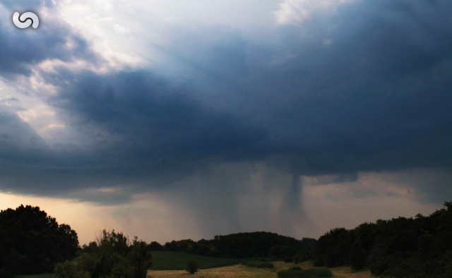 A túloldalon egy másik felhőzetből jól láthatóan ömlött az eső.