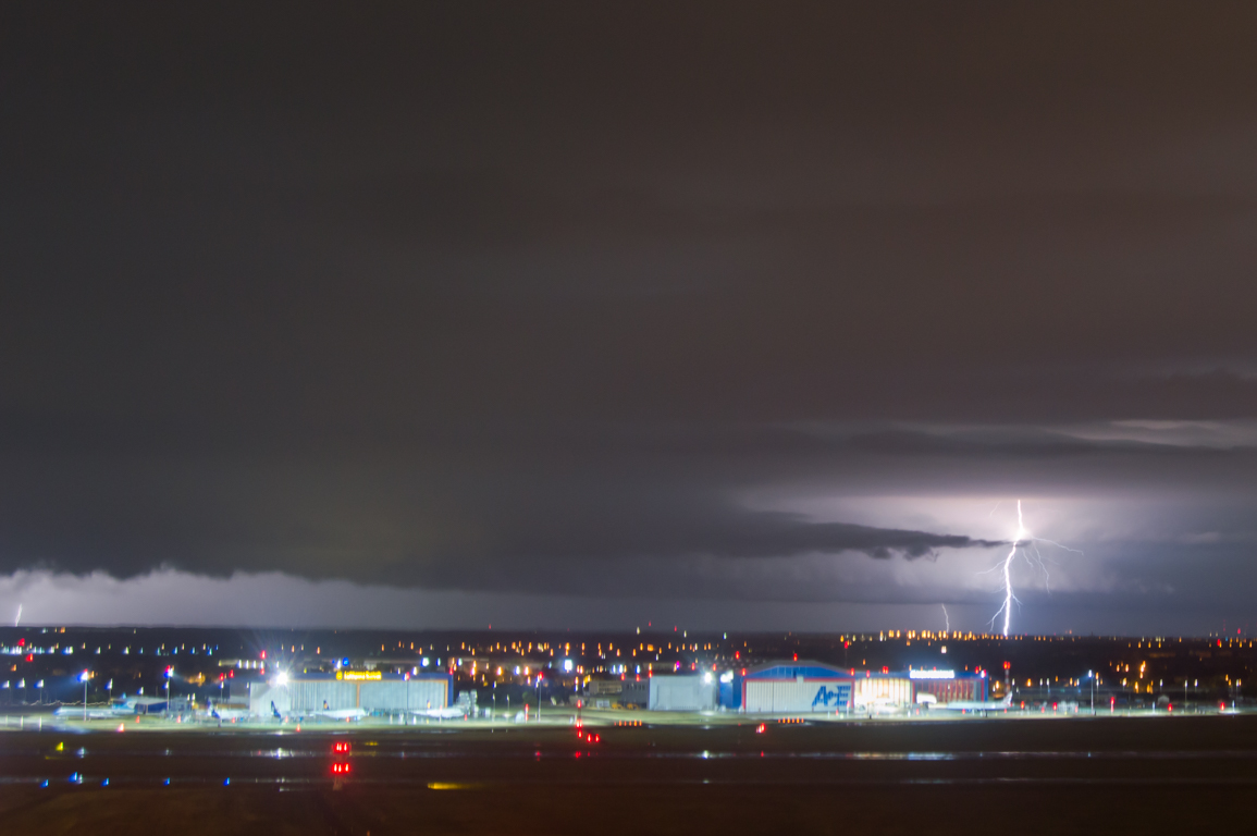 De ne szaladjunk ennyire előre, nézzük szépen sorban az eseményeket. Még napsütéses, fülledt időben értem be a repülőtérre, de rövidesen középszintű felhőzet húzódott fölénk, ami ekkor még nem tűnt labilisnak. Messze délkelet, keleti felé azonban látszódtak a tiszántúli zivatarok (szupercellák) feláramlási tornyai, melyeket előbb narancsosra festett a naplemente, majd a sötétedéssel távoli villogás is látszott belőlük.