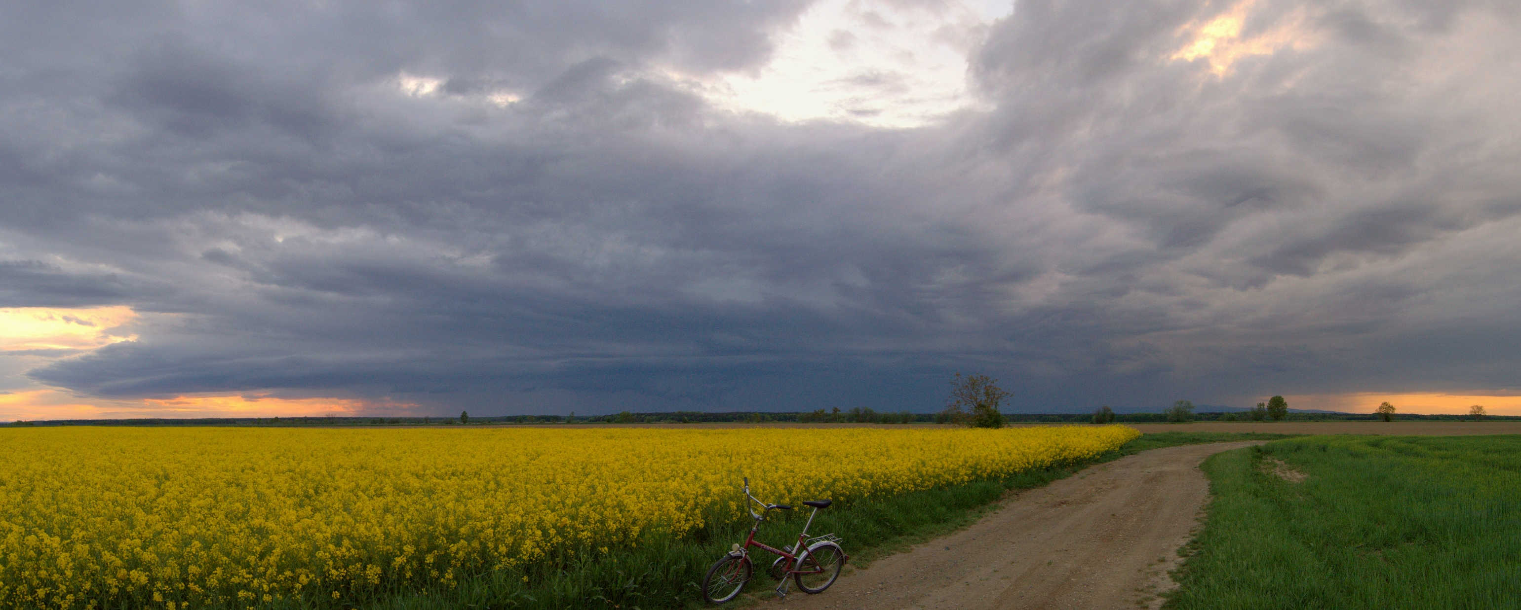 A szupercella viszonylag lassan közeledett, a sötétedés viszont annál gyorsabban, így egyre nehezebb volt fotózni. Mindenesetre jól végig lehetett követni, ahogy a kiterjedt feláramlási alap és az alatta ficánkoló falfelhő egyre jobban előtűnik a távolból, ráadásul - részben egy, a gócot utolérő zápor beolvadásának köszönhetően - átmenetileg HP jelleget is öltött a cella. Érdekességképp megemlítendő, hogy bár az előzőnél erősebb volt, villámtevékenységet ez is alig produkált. Én mindössze egyetlen távoli lecsapót láttam belőle fél 8 körül, és a villámtérképek alapján nagy valószínűséggel ez volt benne az utolsó villám, miközben a jól fejlett struktúráját még legalább fél órán keresztül megőrizte.