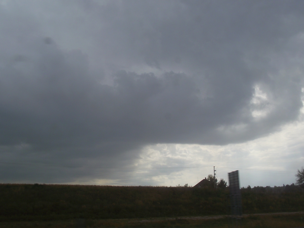 Időközben a radaron már láttam, hogy délnyugatra kialakult egy erősebb, nagy valószínűséggel szupercellás góc, mely lassanként fel is tűnt a távoli fák mögött, olykor egy-egy lecsapó villám kíséretében. Vizuálisan már egyértelmű volt, hogy egy HP szupercellával van dolgom, melynek falfelhője ugyan csak időszakosan jelent meg, de a csapadékmentes feláramlási alap jól látszott, és a cella főleg a déli oldalán folyamatosan erős légzuhatagokat eregetett.