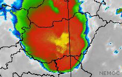 A -52 fokos hőmérsékletnél alacsonyabb felhőtetejű régió összterülete meghaladja az 50 ezer km2-t