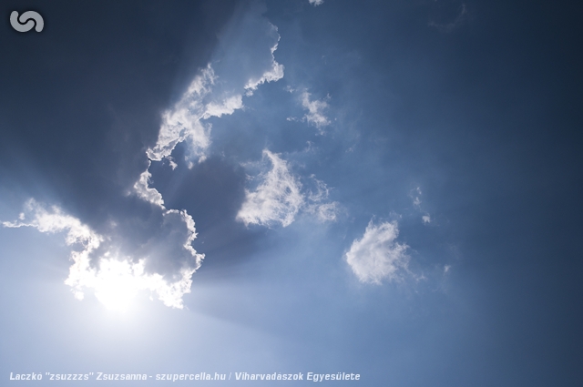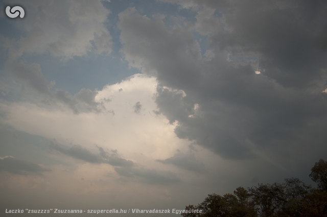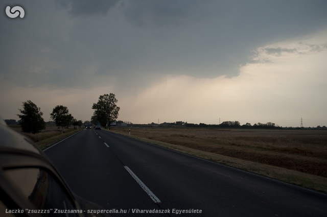 Annyira gyorsan történt minden - és én a sofőr mögött ültem, és jobbra előre egyáltalán nem láttam ki - egyszerre csak azon kaptam magam, hogy Győr mellett megállunk az autópálya egy pihenőjében a benzinkút mögött, és a szemünk előtt rajzolódik ki egy LP szupercella - egyértelmű forgással, kevés csapadékkal, gyűrűszerű rétegződéssel, és mi meg egymásra alig nézve ugrándozunk örömünkben mint a hülyegyerekek.