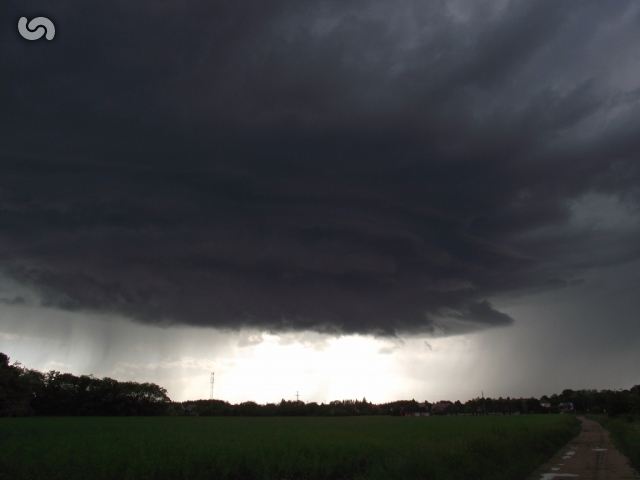 A szupercella a falu felé közeledve egyre zömökebb struktúrájú lett, a kertek alatt járva már lencseszerű feláramlási alapja volt, tépett jellegű falfelhővel.